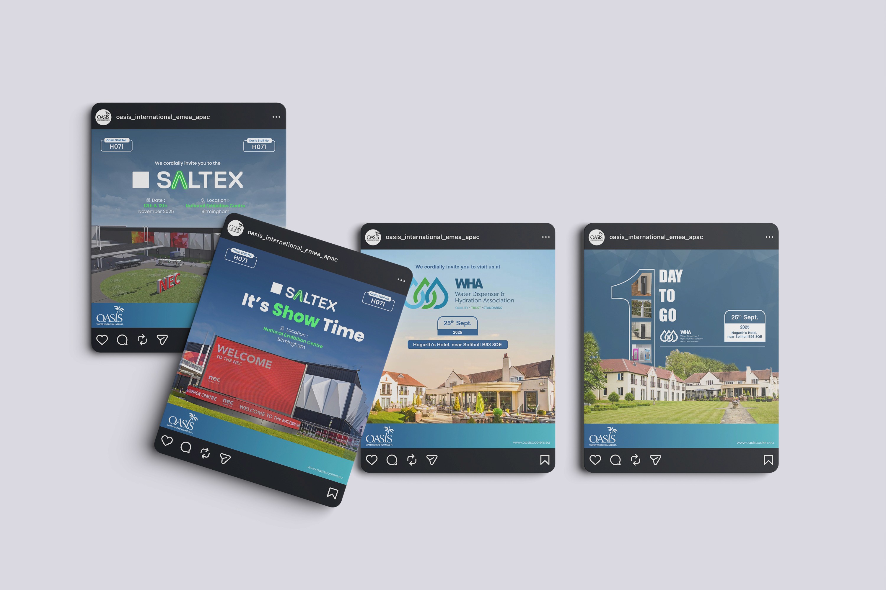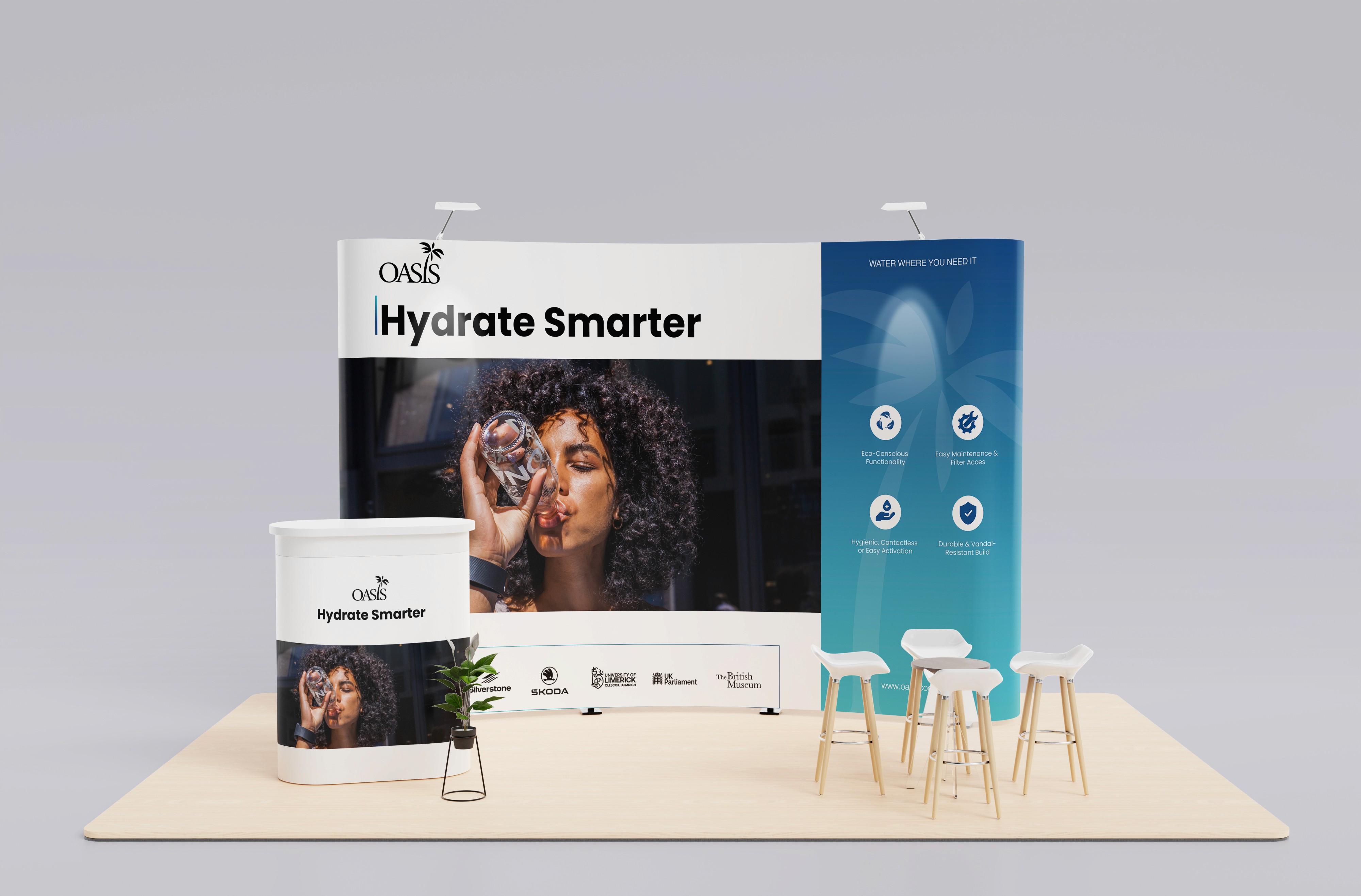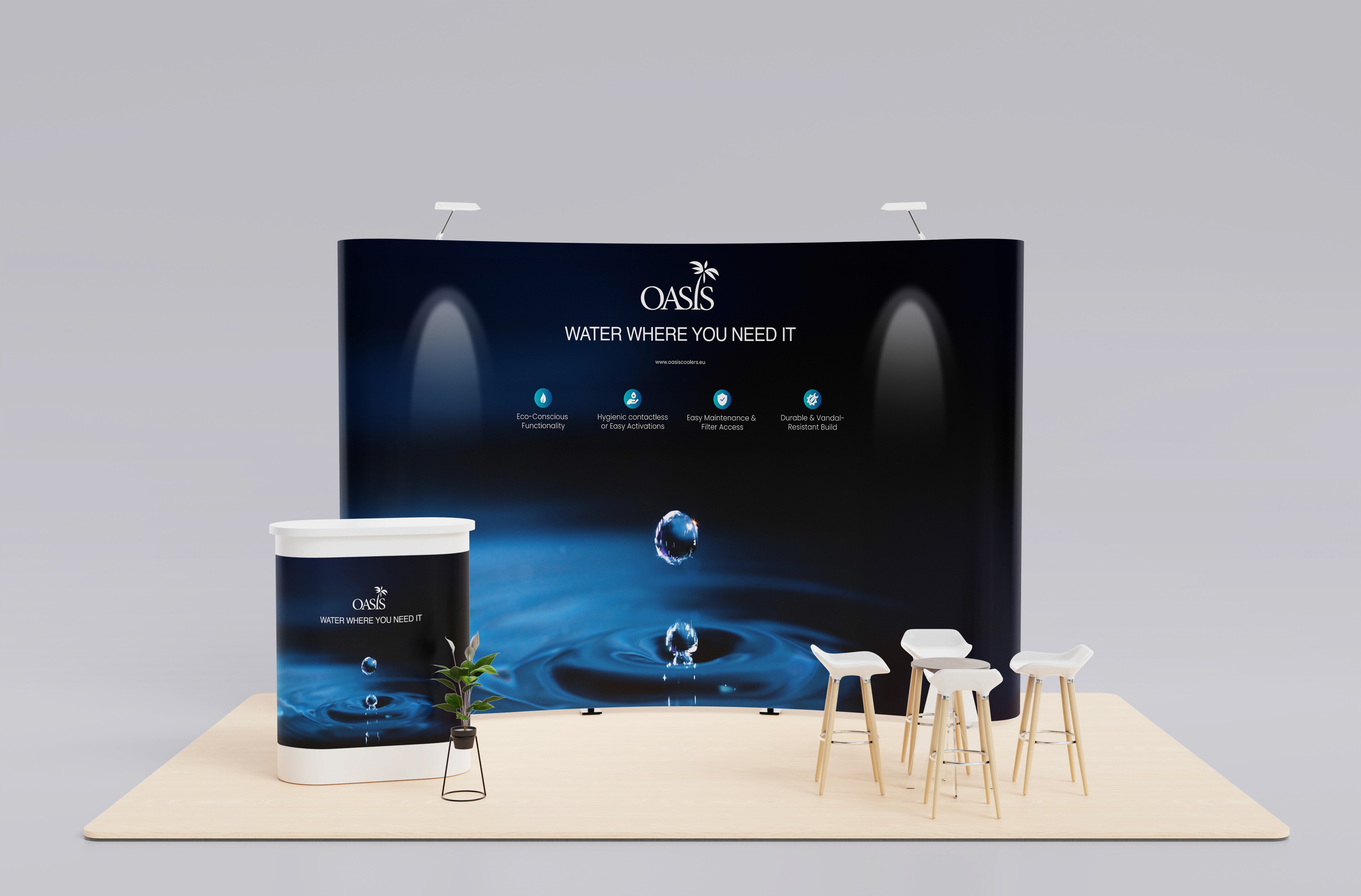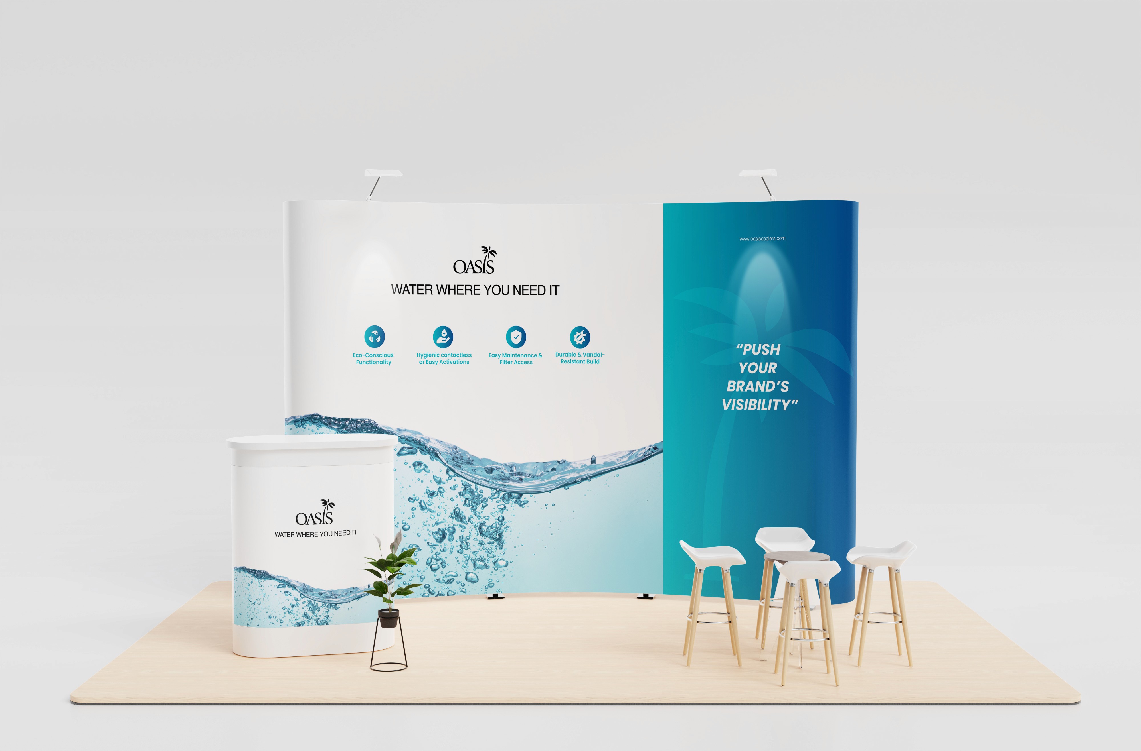 This ensures Oasis International appears structured and credible in competitive exhibition environments.